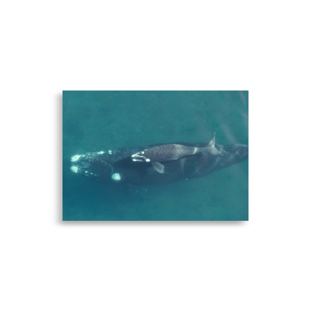 Captura la majestuosidad del océano con este impactante póster de una ballena franca austral nadando junto a su cría, en una imagen aérea que transmite ternura, fuerza y conexión con la naturaleza. Impreso en papel mate de alta calidad, este póster es ideal para amantes del mar, la vida marina y la fotografía de fauna salvaje.